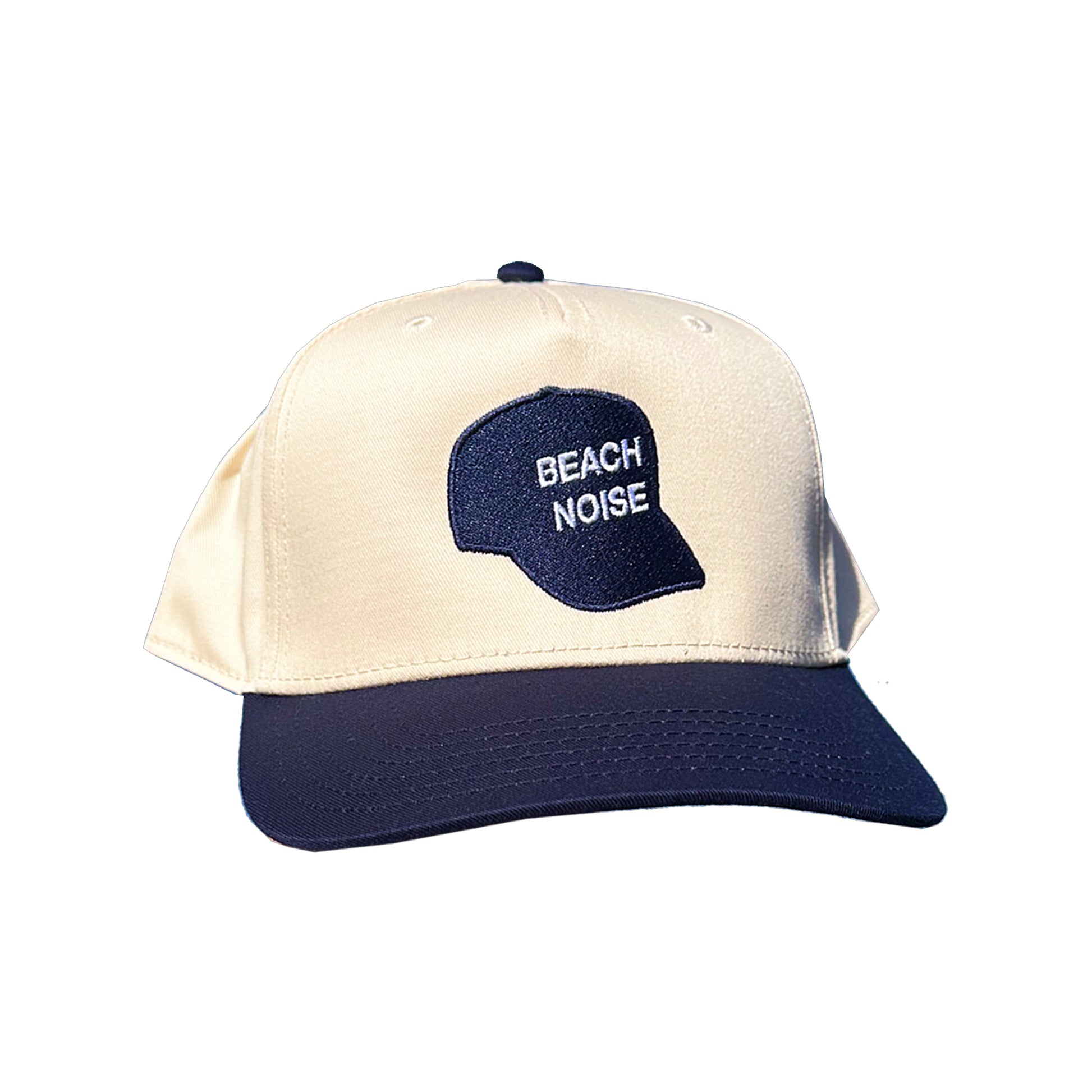 embroidered beach noise hat on a beach noise snapback.
